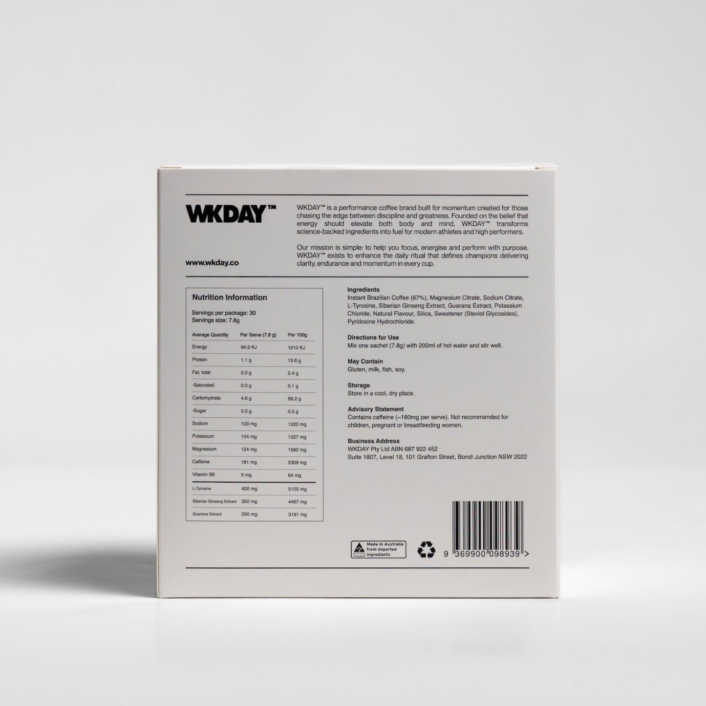 WKDAY is designed for athletes, tradies, and high-output individuals who need consistent energy and focus throughout the day.